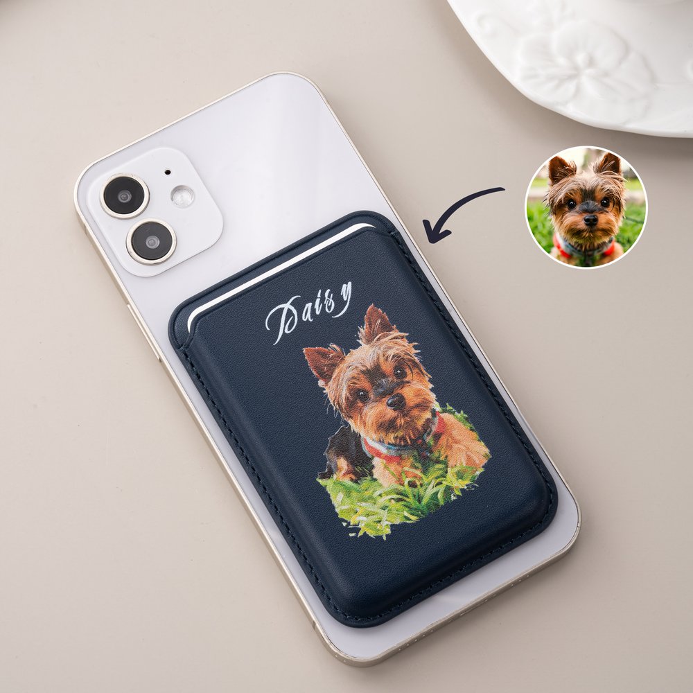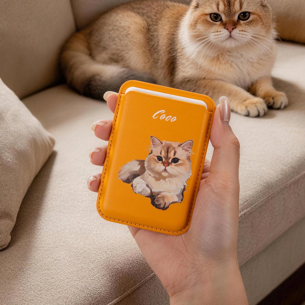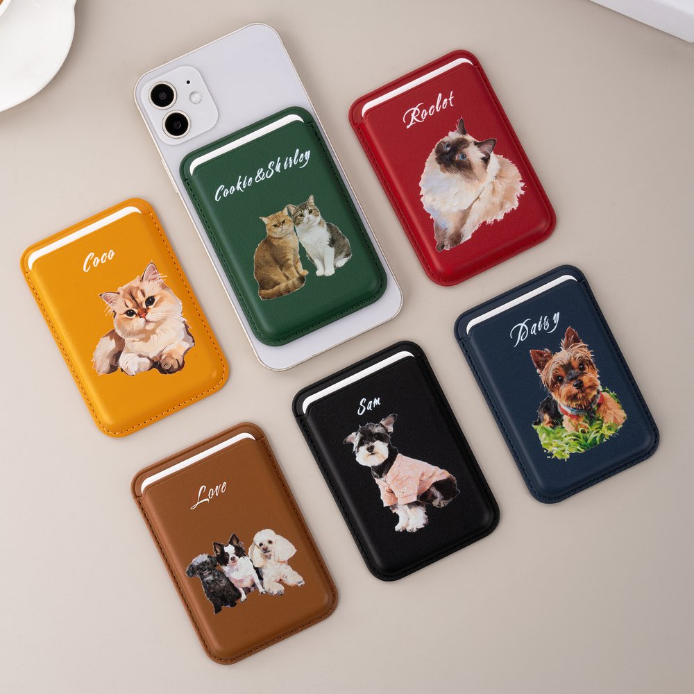 Denne kortholderen inneholder 1-3 bilder av kjæledyr i oljemaleristil og kan personaliseres med kjæledyrets navn, noe som gjør et enkelt dagligdags tilbehør til en varm hyllest til din kjære følgesvenn. Det kunstneriske oljemaleriet gir et elegant og tidløst uttrykk, noe som gjør den helt unik.